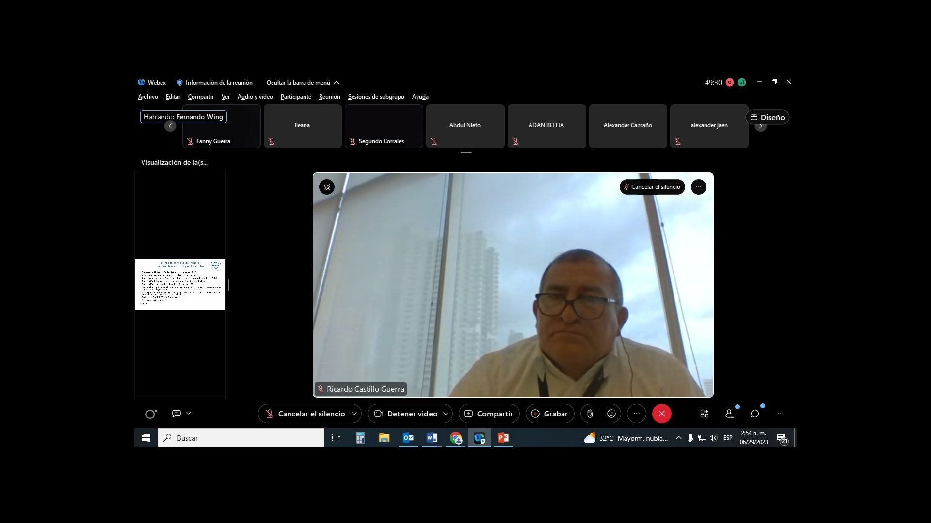 Participó como expositor, el Magíster Fernando Wing, Director de Mecanismo Nacional de Tortura de la Defensoría del Pueblo de la República de Panamá, que en su ponencia presentó temas en general sobre la tortura y otros tratos inhumanos degradantes que se viven a diario a nivel mundial; de igual manera, ilustró a los participantes sobre la normativa nacional e internacional al respecto, e hizo hincapié al enfoque preventivo, las visitas, monitoreo e igualmente, destacó la importancia de los principios de mecanismos, donde se destaca el respeto a la dignidad humana, la seguridad y la diferencia entre las formas de afectación a la integridad personal que puede ser relevantes en materia de mecanismos de protección.