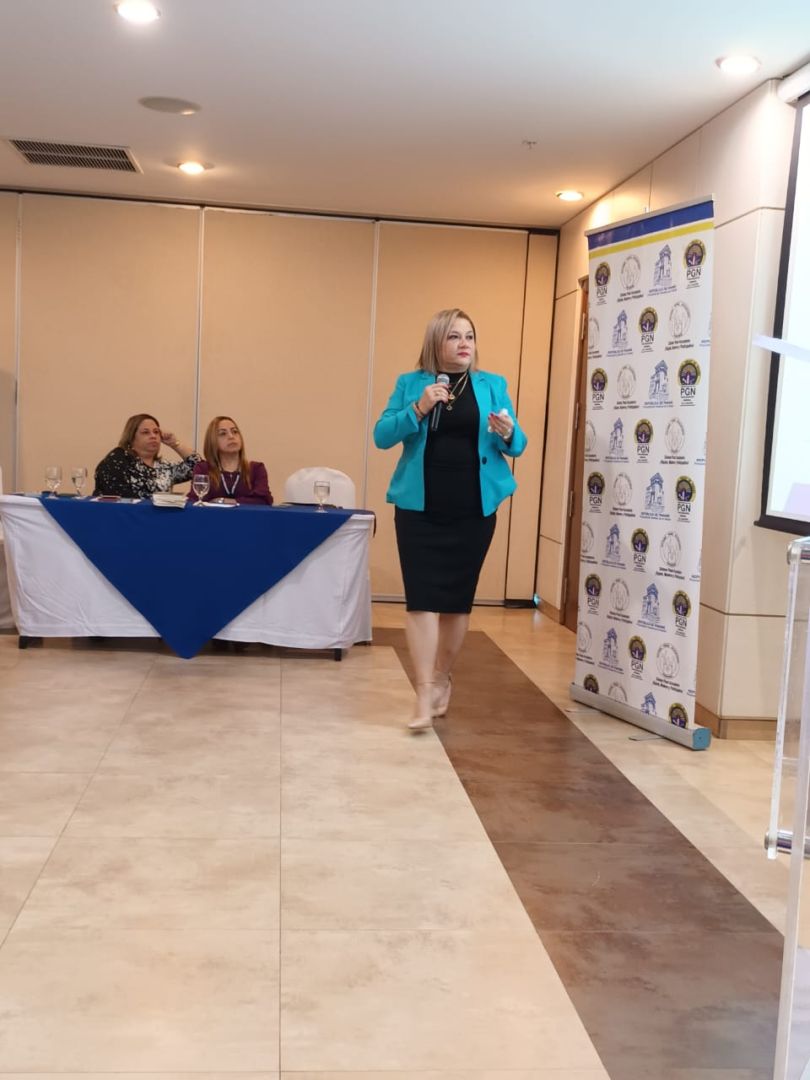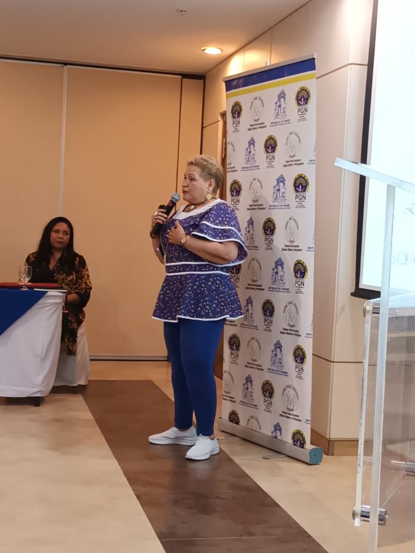Por su parte la Fiscal Superior de la Sección de Familia de la Fiscalía Metropolitana, Kathia Meléndez, se refirió a la normativa legal y lo que establece nuestro país en materia de administración de justicia en la atención de los casos de violencia hacia la mujer en el entorno del hogar.