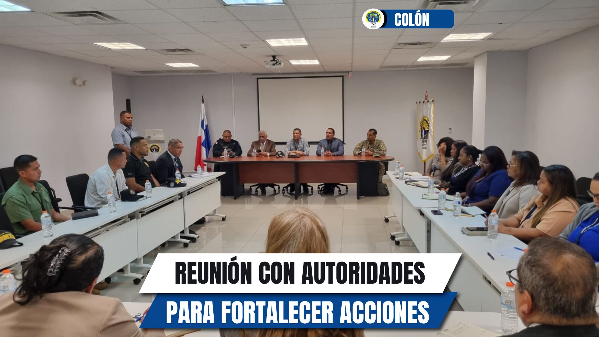 Con el objetivo de fortalecer las acciones para garantizar la seguridad en la provincia de Colón, se realizó una reunión donde estuvieron presentes el Fiscal Superior Rafael Baloyes, junto a fiscales adjuntos y de circuitos; así como el gobernador Julio Hernández, el comisionado Irvin Castillo, Director Nacional de Investigación Judicial, el subcomisionado Tadeo Osorio, jefe de zona Policial de Colón y el mayor Francisco Perea, del Servicio Nacional Aeronaval (Senan).