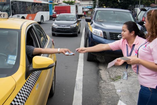 En conmemoración del Mes de la Cinta Rosada y Celeste, la Fiscalía Metropolitana de la Procuraduría General de la Nación, realizó un volanteo informativo a la ciudadanía acerca del combate en contra del cáncer de mama y próstata, en las calles aledañas del Ministerio Público.