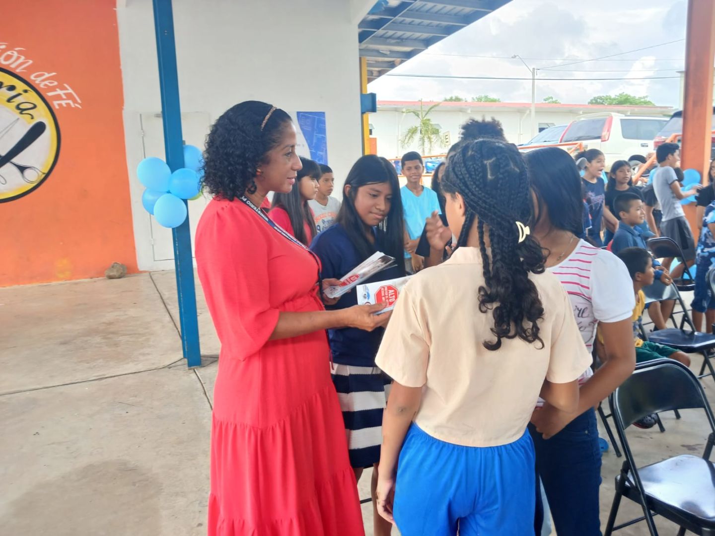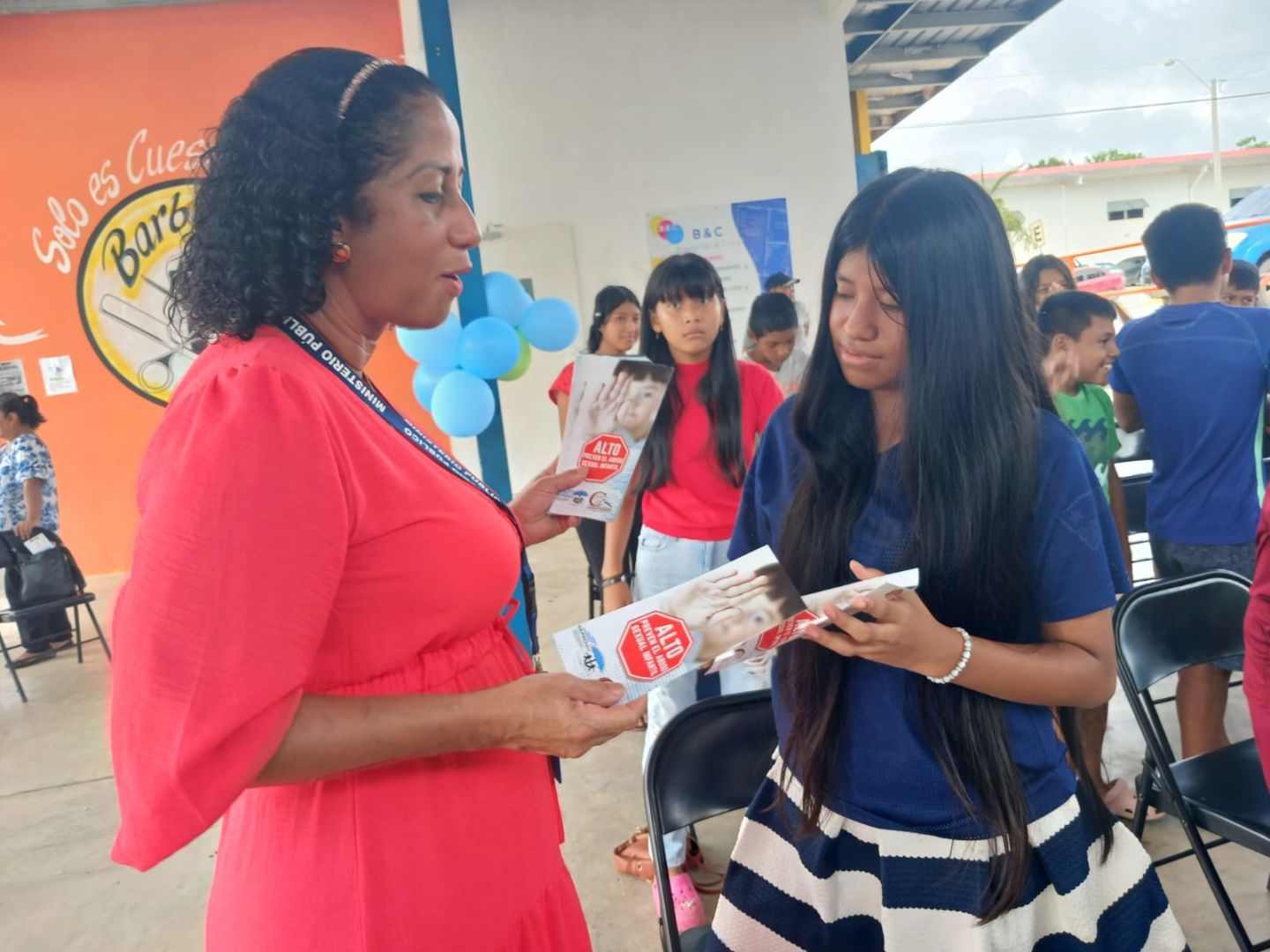 Durante la actividad que llevaba como lema “Uniendo Fuerzas Contra la Delincuencia” la representante del Ministerio Público, sostuvo una charla con el grupo infantil, de prevenir el delito sexual, a la vez se entregó volantes para que conozcan del tema.