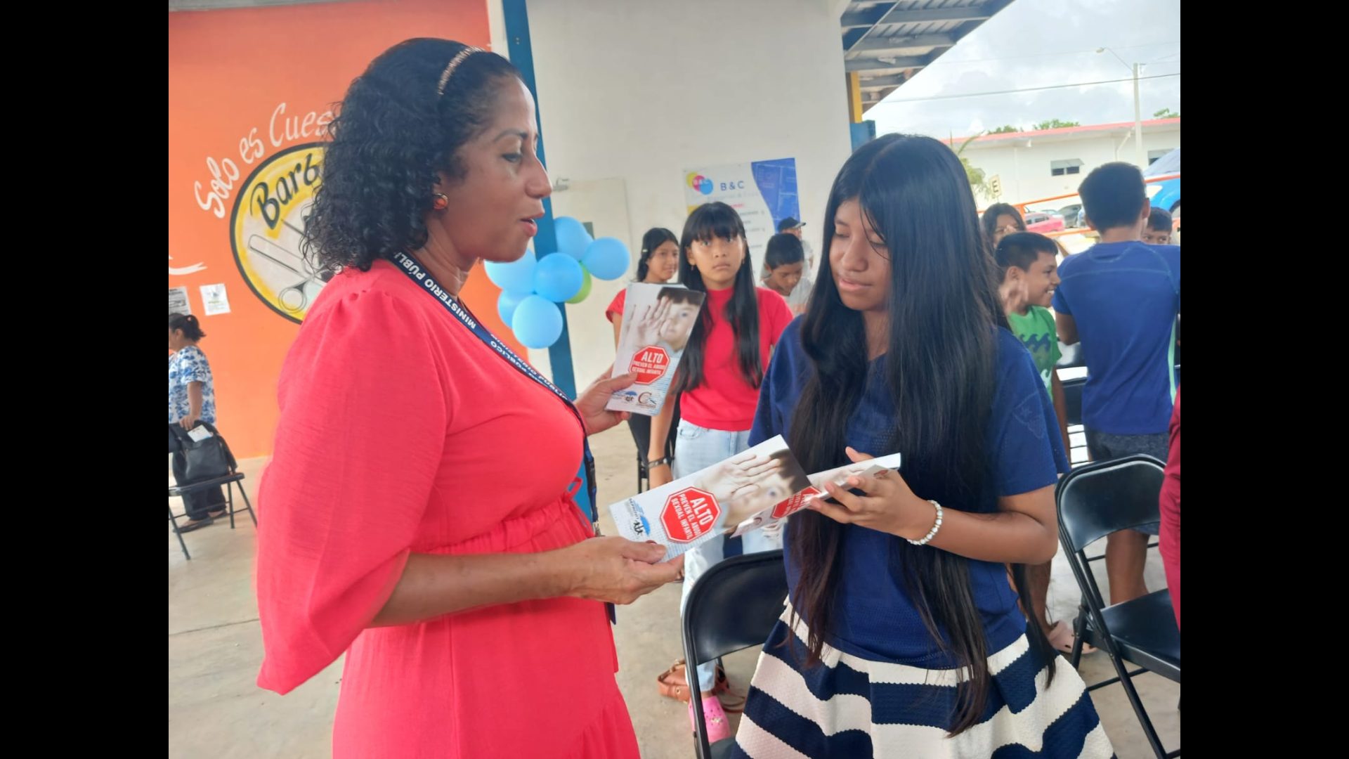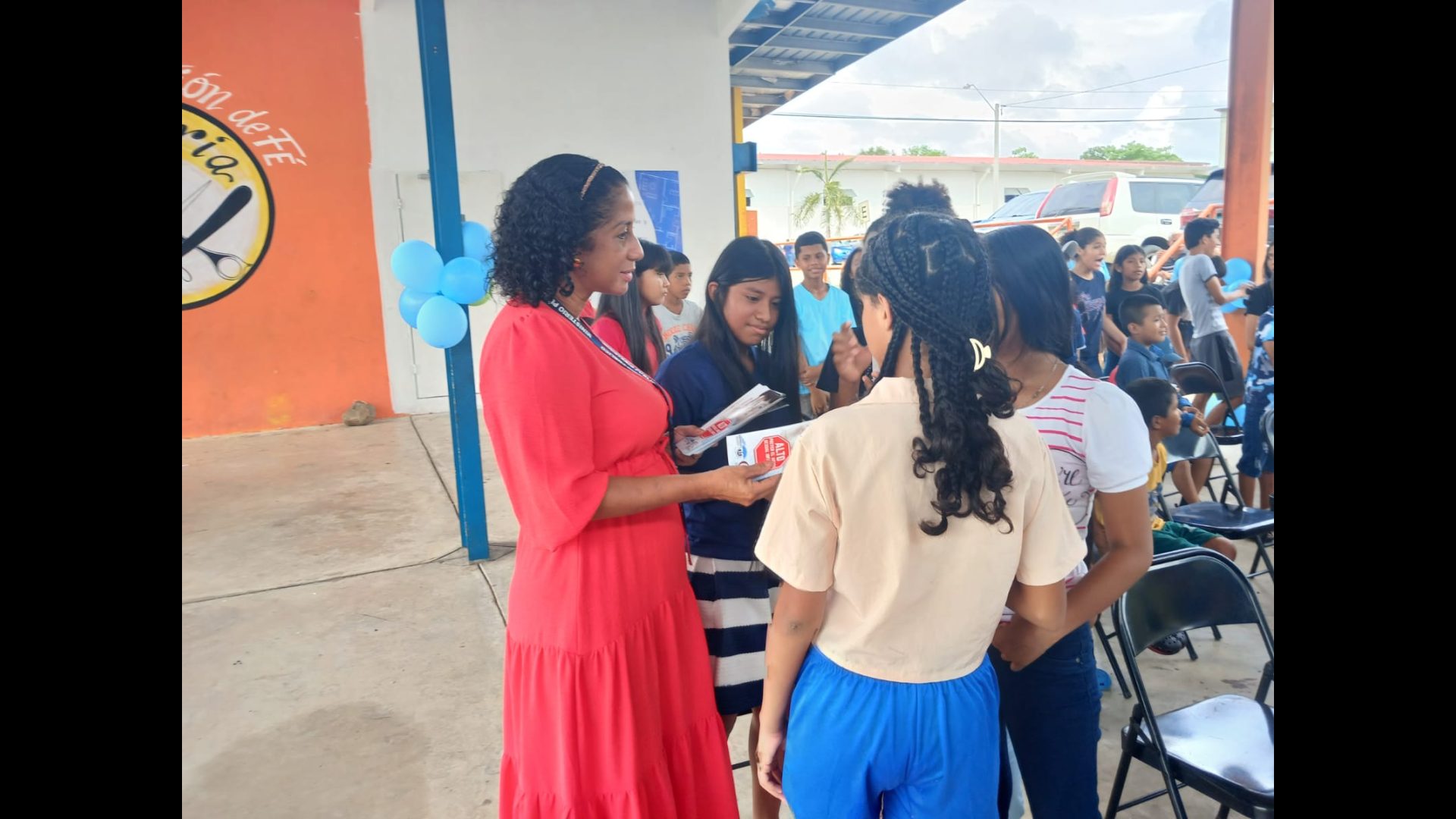 Durante la actividad que llevaba como lema “Uniendo Fuerzas Contra la Delincuencia” la representante del Ministerio Público, sostuvo una charla con el grupo infantil, de prevenir el delito sexual, a la vez se entregó volantes para que conozcan del tema.
