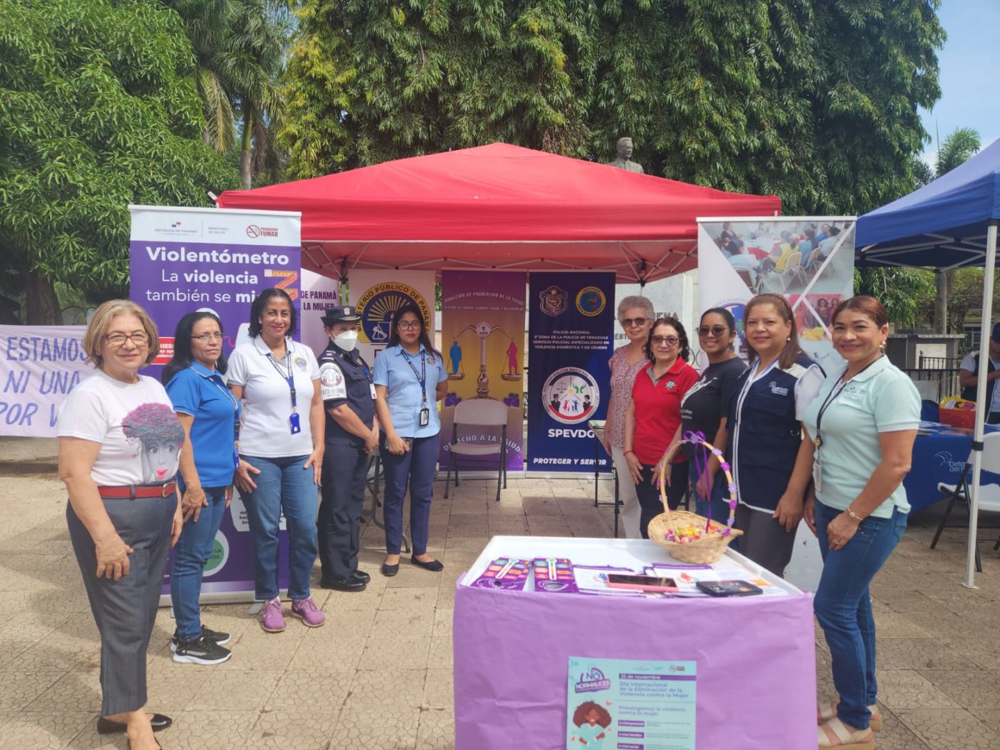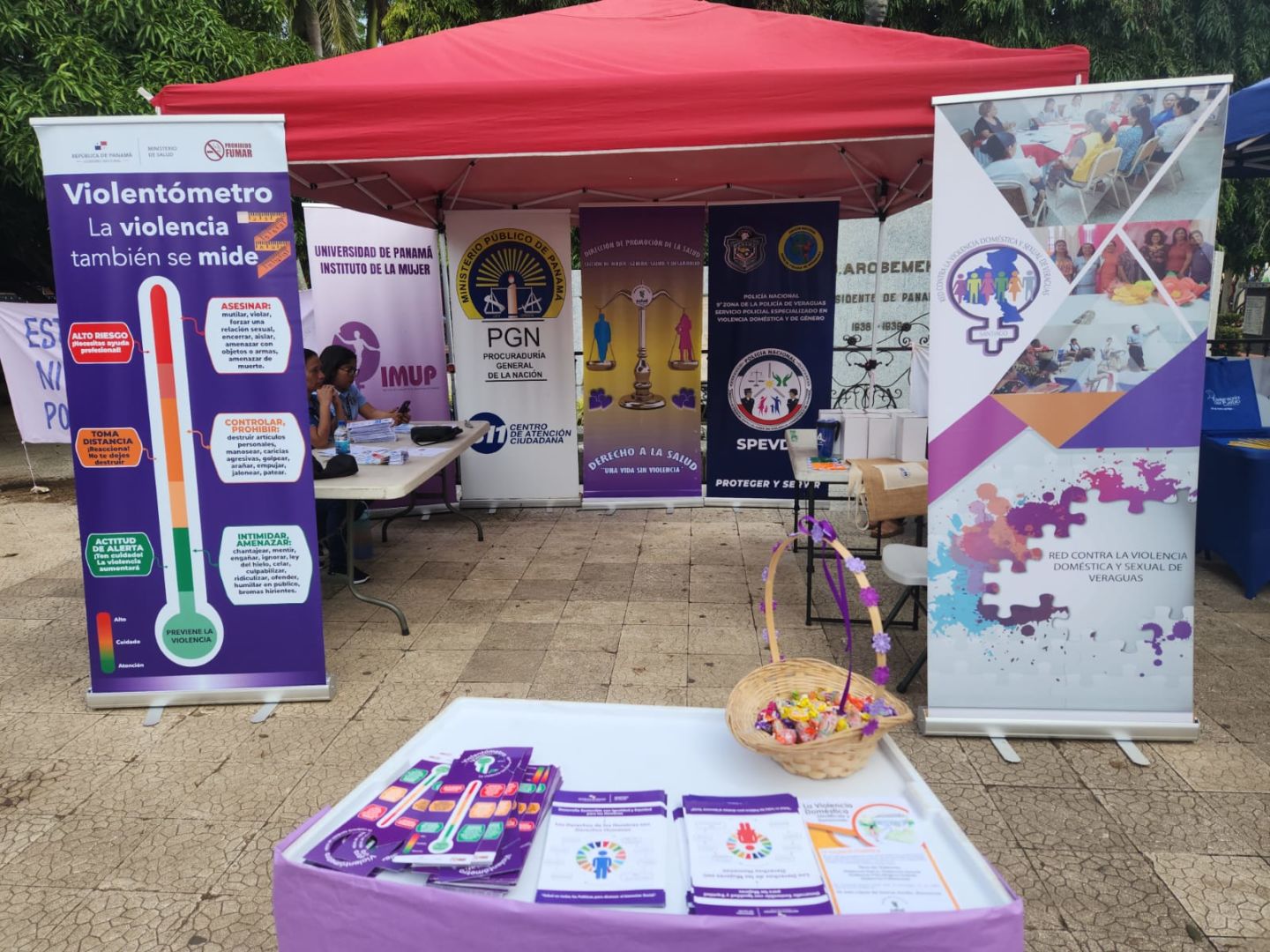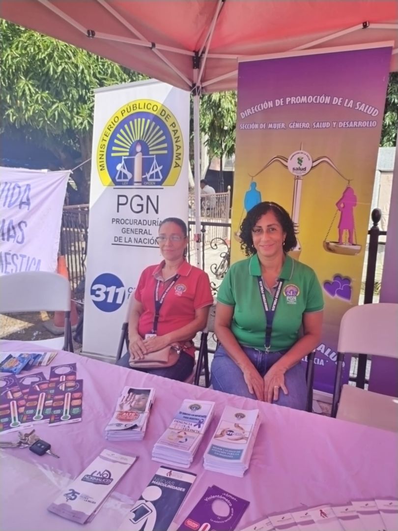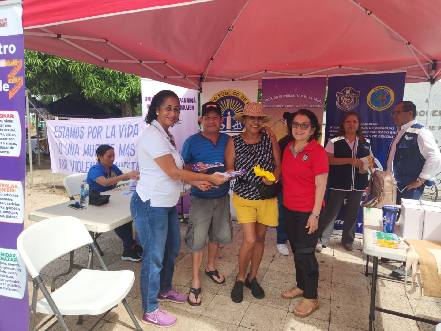 En medio de las festividades patronales de Santiago, la Fiscalía Regional de Veraguas realiza charlas y volanteo de prevención de la red de violencia doméstica y delito sexual en niños, niñas y adolescentes, en el parque Juan Demóstenes Arosemena.