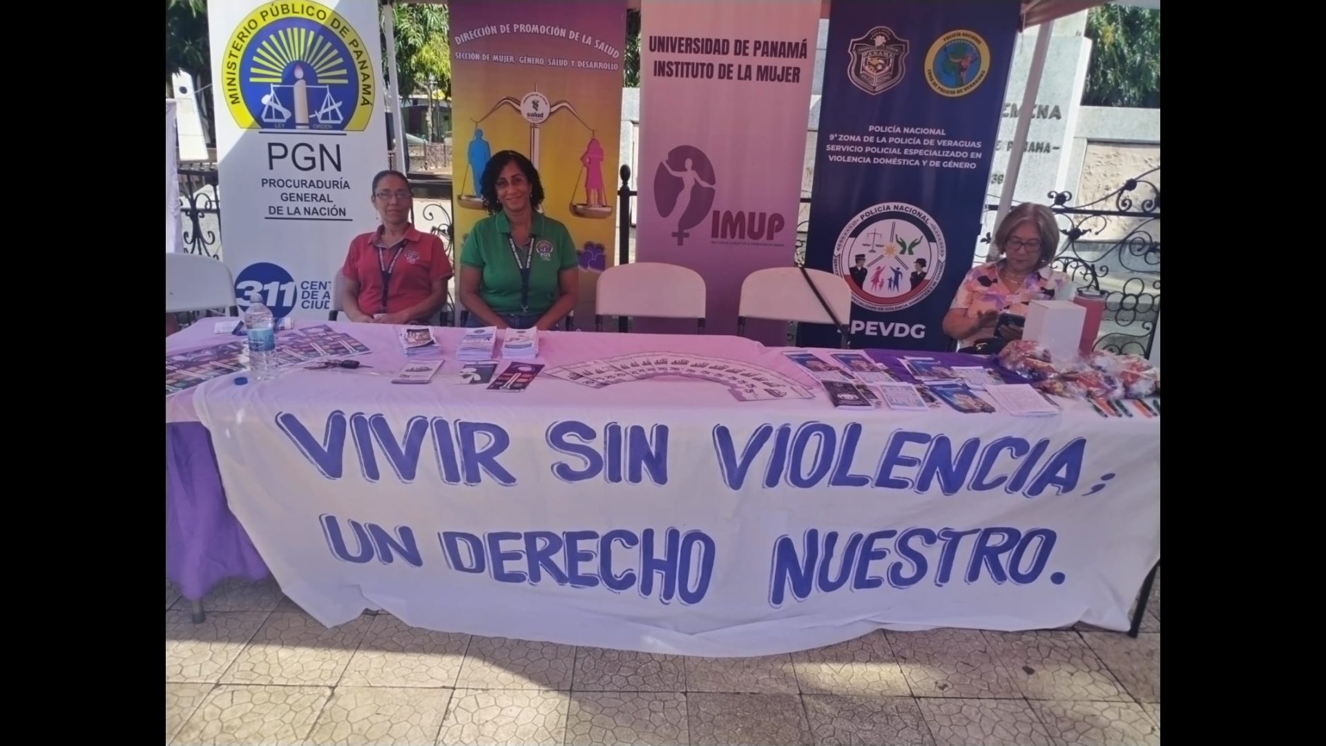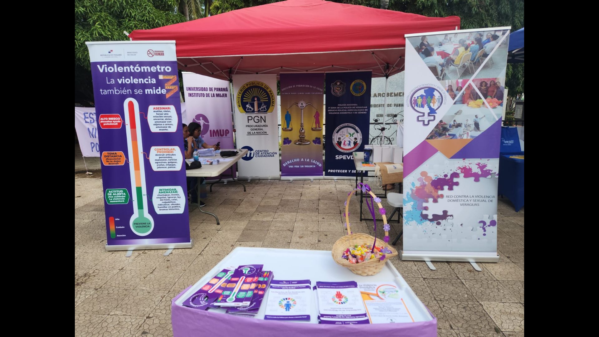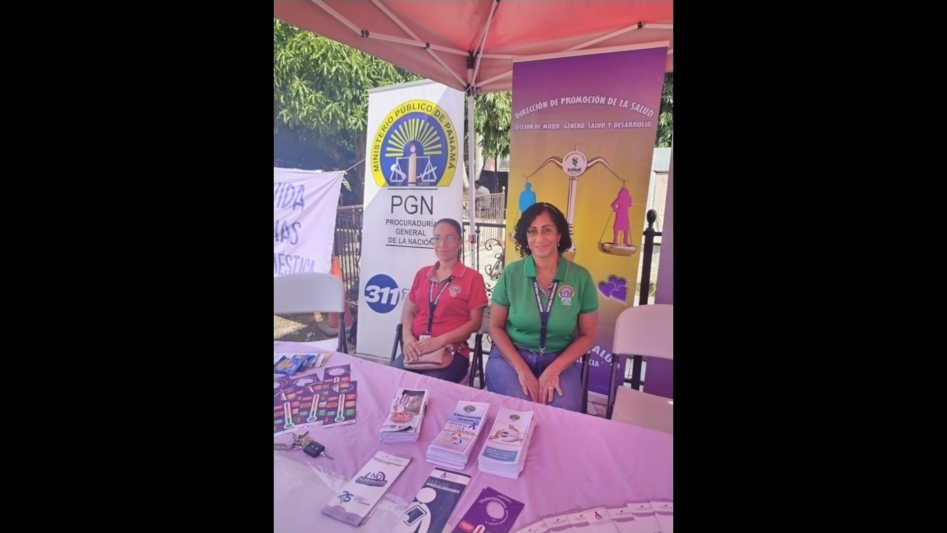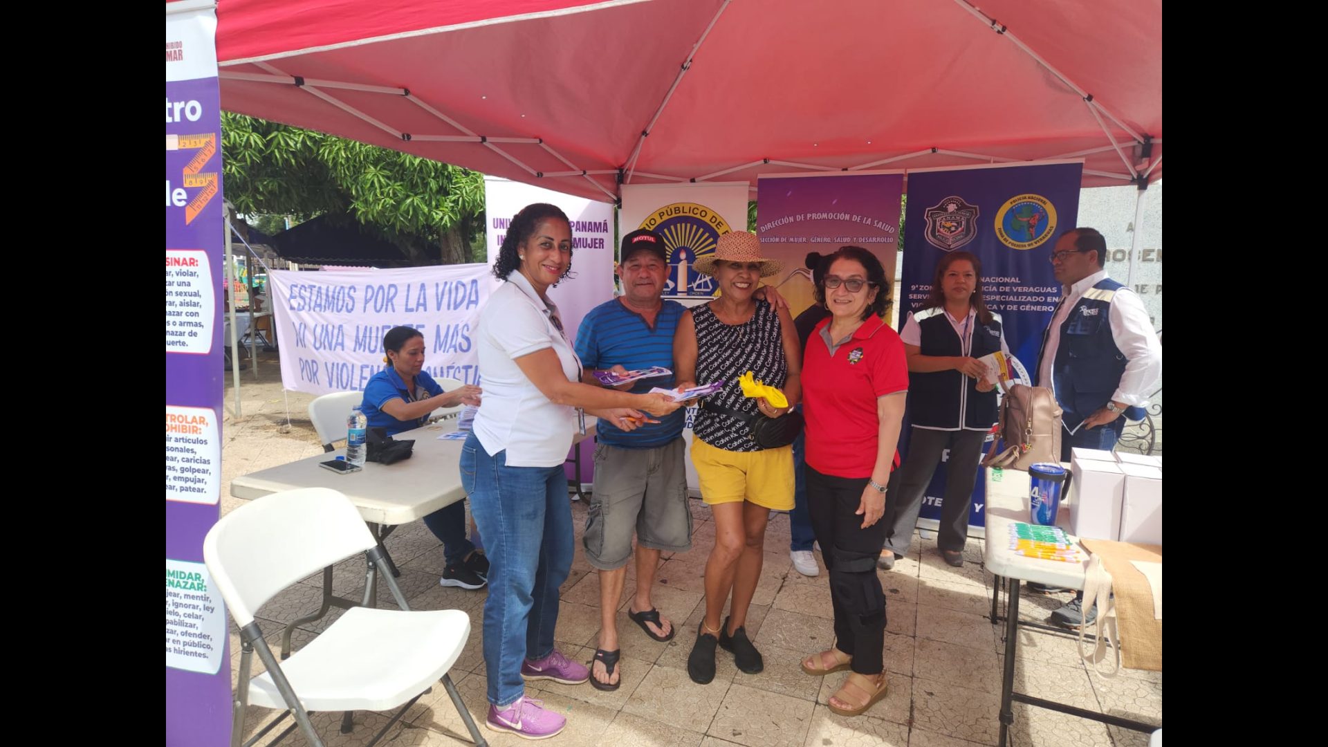 En medio de las festividades patronales de Santiago, la Fiscalía Regional de Veraguas realiza charlas y volanteo de prevención de la red de violencia doméstica y delito sexual en niños, niñas y adolescentes, en el parque Juan Demóstenes Arosemena.