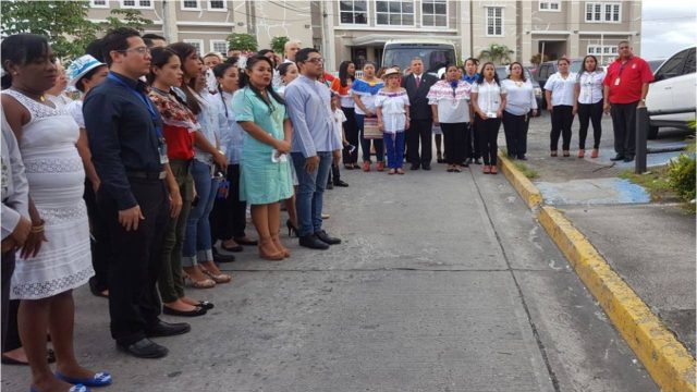 El fiscal Superior de San Miguelito, Luis Alberto Martínez Sánchez, acompañado de funcionarios de la Fiscalía Regional de San Miguelito, se reunieron durante la mañana de hoy 1 de noviembre, para rendirles honores a la Patria.