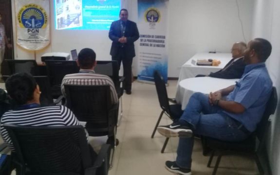 El encuentro fue presidido por el Fiscal Superior de la Regional de Bocas del Toro, Rafael Baloyes Lobo, quien estuvo acompañado del Coordinador de la Oficina de Apoyo a la Comisión de Carrera de la PGN, Roberto Crespo Lezcano, en calidad de expositor.