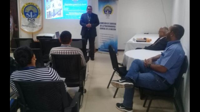 El encuentro fue presidido por el Fiscal Superior de la Regional de Bocas del Toro, Rafael Baloyes Lobo, quien estuvo acompañado del Coordinador de la Oficina de Apoyo a la Comisión de Carrera de la PGN, Roberto Crespo Lezcano, en calidad de expositor.