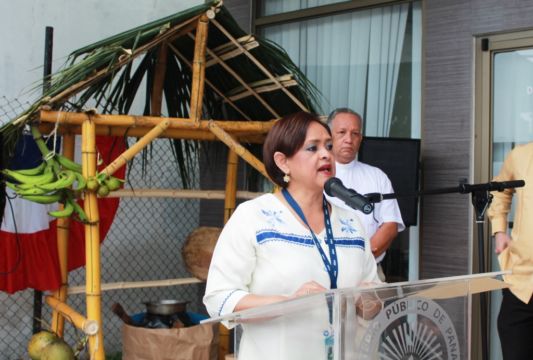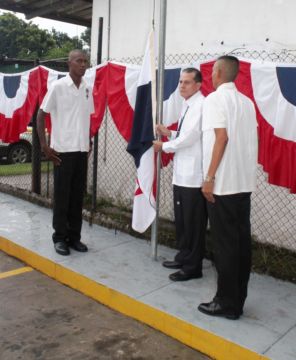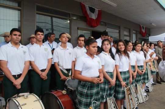 El acto contó con la entonación de las notas del Himno Nacional, a cargo de la banda de música del Colegio Anglo Panameño.