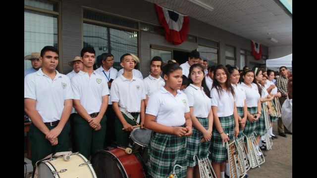 El acto contó con la entonación de las notas del Himno Nacional, a cargo de la banda de música del Colegio Anglo Panameño.