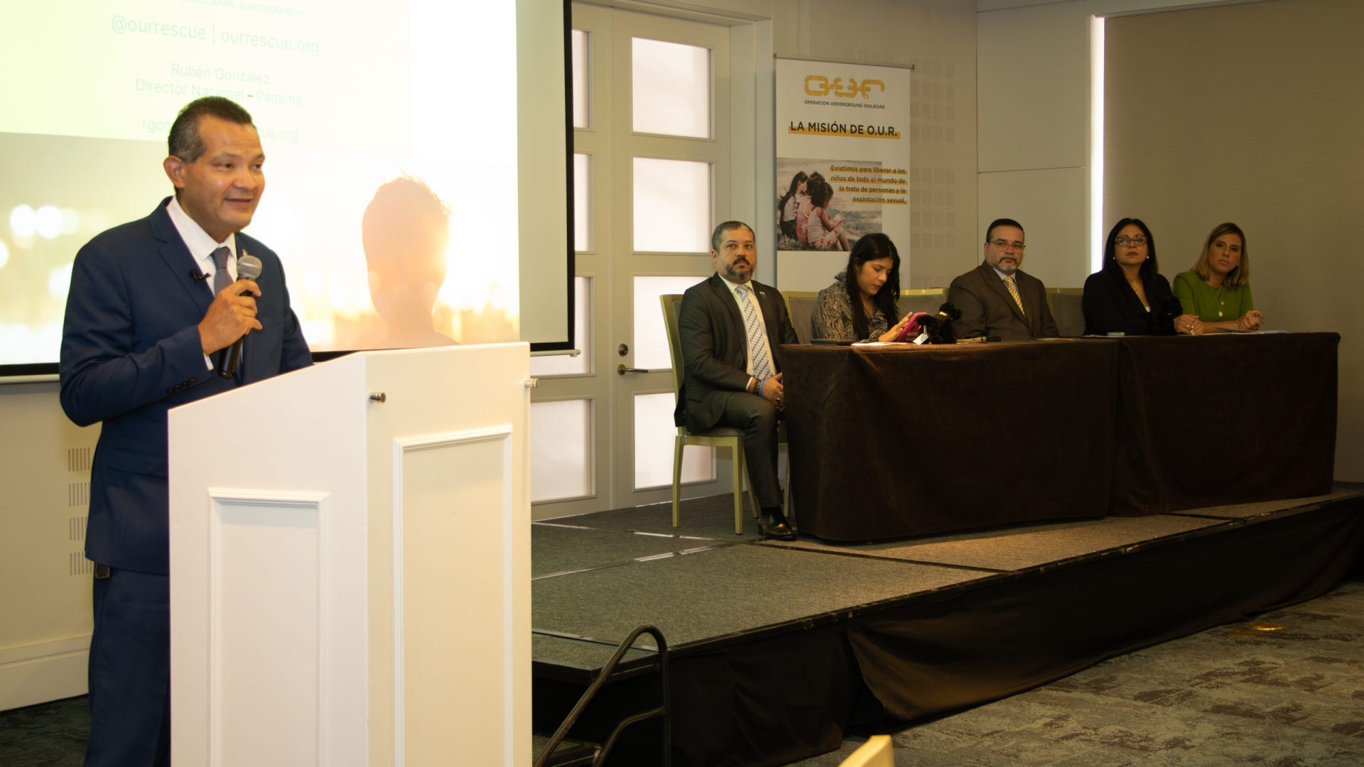 El Secretario General de la Procuraduría General de la Nación, José Antonio Candanedo, participó del lanzamiento oficial de la sede de “Operación Underground Railroad” (OUR) en Panamá, que tiene como misión rescatar a los niños de la esclavitud para que puedan romper las cadenas de la opresión, ofreciéndoles asistencia técnica y financiera a los organismos de seguridad, entidades gubernamentales y ONGs, que atienden la problemática de la trata de personas y la explotación sexual de niños, niñas y adolescentes respaldándoles en la prevención, sanción a los explotadores y atención posterior a los sobrevivientes de todas la edades, sexo y género para que se puedan recuperar su salud y disfrutar de una vida digna.