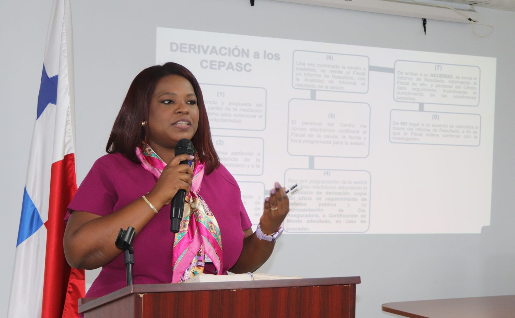 El equipo de facilitadores estuvo integrado por destacados profesionales en la materia, entre ellos Linda Mitchell, Secretaria Encargada de la Secretaría Nacional de Procedimientos de Métodos Alternos y Solución de Conflictos (SENAPASC); la Fiscal Superior Digna Castillo; la Defensora de Víctimas, Marian Jiménez; el Magistrado del Tribunal Superior de Apelaciones del Primer Distrito Judicial, Adrián Hernández y Benito Vega, Defensor Público.