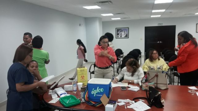 La Unidad de Recursos Humanos en Colón, en cumplimiento del Plan Estratégico de la Dirección, Fortaleciendo el Recurso Humano; adecuando al capital humano a los desafíos institucionales, participación e integración del personal y así mejorar su calidad de vida con programas especiales de bienestar;organizaron una jornada de vacunación, en coordinación con el Ministerio de Salud (MINSA).