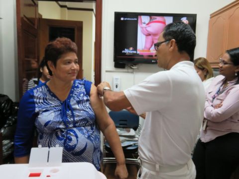En la actividad realizada en el edificio Saloon fueron atendidos 99 funcionarios para vacunación de influenza, neumococo y toxoide. Adicional se hizo toma de presión, medición de los niveles de glucosa e índice de masa corporal, lo anterior se realiza en cumplimiento del plan estratégico de la Dirección de Recursos Humanos, específicamente del objetivo estratégico de generar conductas de solidaridad institucional, implementando programas de salud para el personal a nivel nacional.