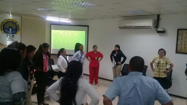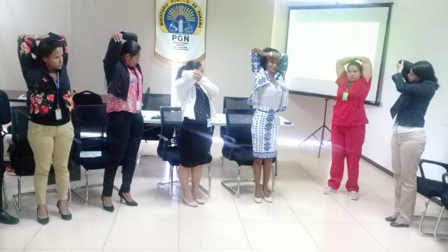 Las palabras de bienvenida fueron dadas por Vielka Gaitán- Fiscal de Circuito en de la Sección de Investigación y seguimiento de causas en Bocas del Toro, indicando la importancia en el cuidado de nuestra salud mental y los controles debidos en cuanto a terapia física y ejercicios de relajación, en una institución que maneja altos niveles de estrés laboral.