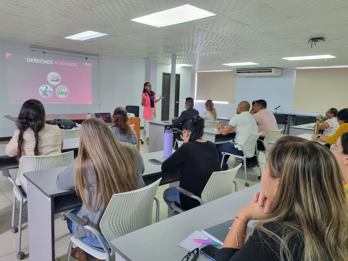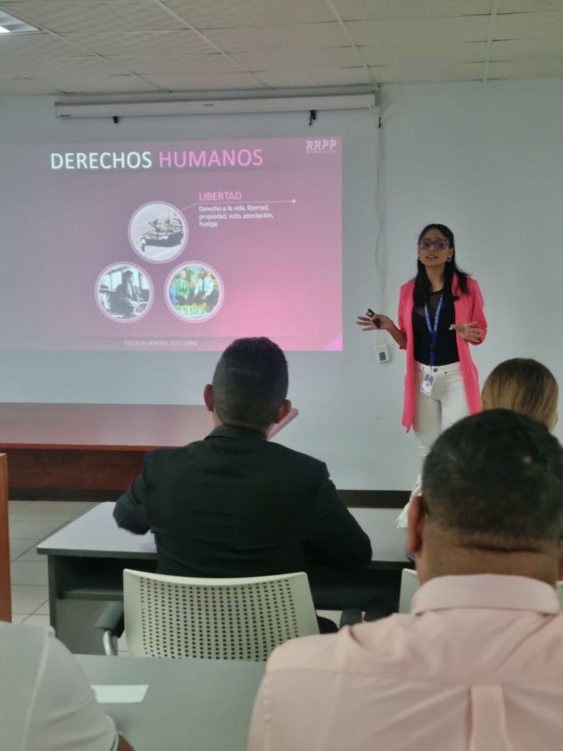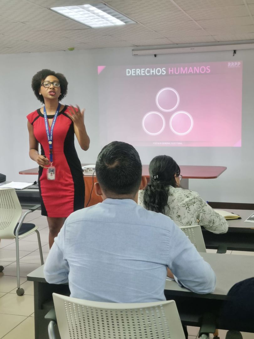 Se contó en calidad de expositores a las licenciadas, Evelyn Arboleda Jefa del Departamento de Igualdad de Género, Astrid Marino, Asistente Legal del Departamento de Igualdad de Género y al licenciado Luis Medrano asistente de Fiscal de la Fiscalía General Electoral.