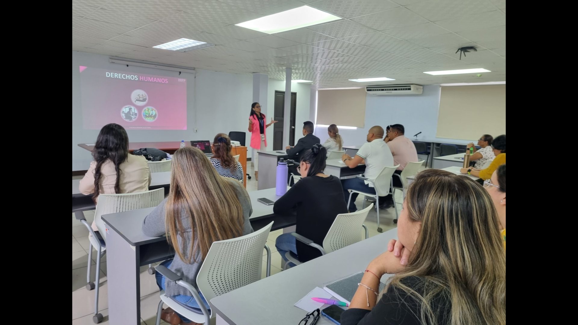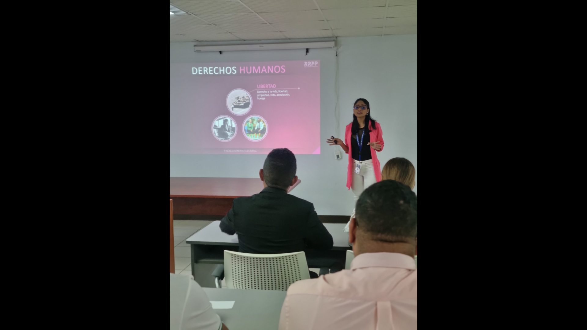 Se contó en calidad de expositores a las licenciadas, Evelyn Arboleda Jefa del Departamento de Igualdad de Género, Astrid Marino, Asistente Legal del Departamento de Igualdad de Género y al licenciado Luis Medrano asistente de Fiscal de la Fiscalía General Electoral.