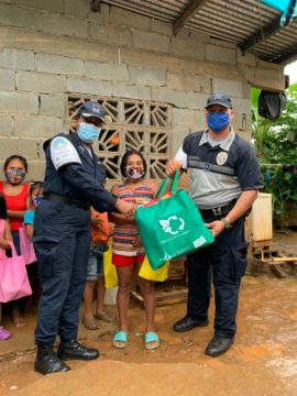 La Policía de Niñez y Adolescencia de Arraiján fue el enlace para llegar a estas familias que producto de la pandemia por el coronavirus no pueden salir a buscar el sustento diario.