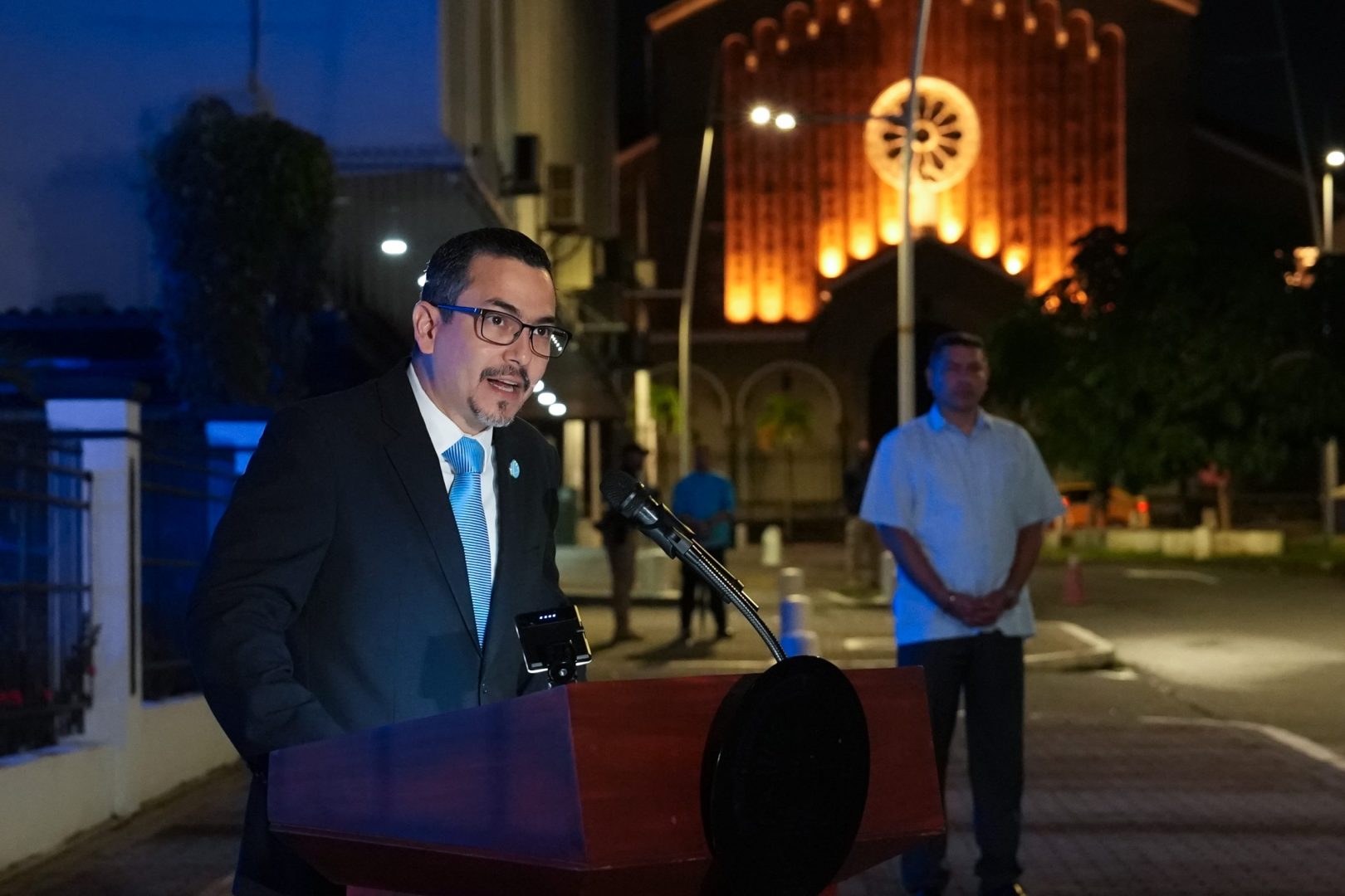 En conmemoración al mes Contra la Trata de Personas, el Procurador General de la Nación Luis Carlos Gómez y su equipo de trabajo participaron del acto de encendido de luces en la Casita Porras, como parte de la campaña Corazones Azules, que busca concientizar y prevenir este delito; además de sensibilizar a la ciudadanía sobre la importancia de denunciar y promover acciones que contribuyan a la protección y restitución de los derechos de las víctimas.