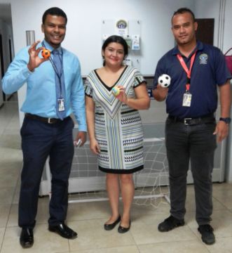 Una actividad muy gustada fue la realizada el 27 de junio, donde colocamos una canchita de futbol para que los colaboradores anotaran, premiando al que lograra meter un gol. Los ganadores fueron: Julio Castillo, conductor; Isaac Contreras, administrador; ambos de la Coordinación Administrativa. Marissa Caballero, Fiscal de Circuito de la Sección de Juicio y cumplimiento; otorgándoles unas bolas de terapia de relajación.