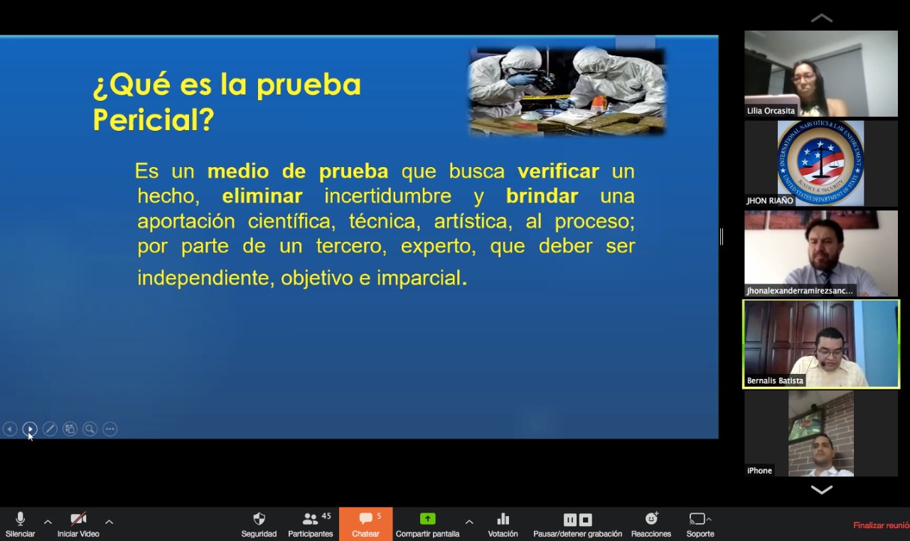 En momentos en que el país atraviesa por la emergencia sanitaria mundial provocada por el Covid-19, nuestros aliados en materia de capacitación institucional, la Sección Antinarcóticos y Aplicación de la Ley (INL) de la Embajada de Estados Unidos organizó un ciclo de conferencias virtuales judiciales, que han permitido la actualización en las siguientes temáticas: Ciberdelitos, la Prueba Ilícita en el SPA, Teoría del Dominio del Hecho, Testimonio del Experto en Corte, el Registro de Beneficiarios finales y su Impacto en Investigaciones de Blanqueo de Capitales, Defraudación Fiscal, Extinción del Dominio.