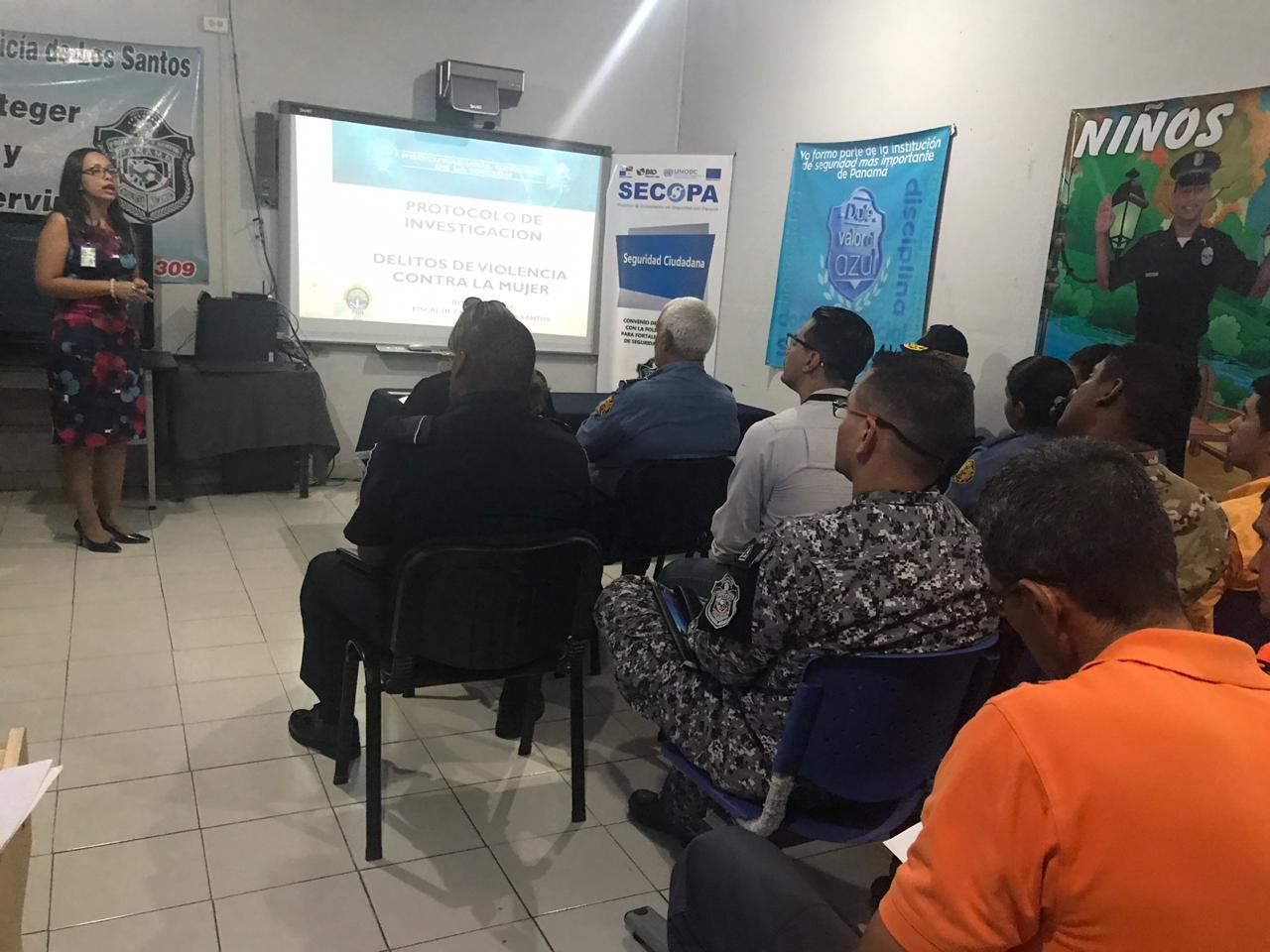 La Secretaría de Derechos Humanos, Acceso a la Justicia y Género del Ministerio Público en conjunto con la Oficina de Género del Ministerio de Seguridad Pública brindaron una capacitación a los estamentos de seguridad de las provincias de Herrera y Los Santos, en materia de delitos de violencia doméstica, resaltando el buen trato a las víctimas y la importancia de la figura del primer interviniente en este tipo de delitos.