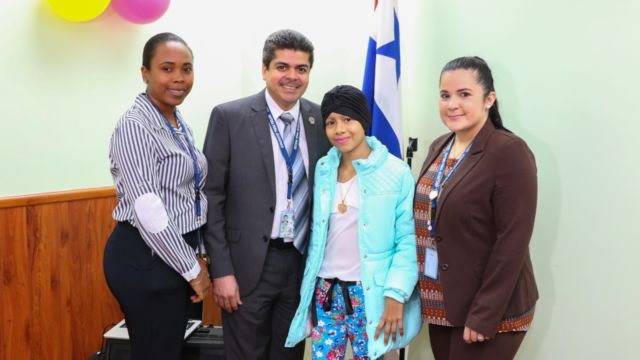 Con los brazos abiertos recibimos la visita de Astrid Rodríguez, de 11 años, la ahijada del Ministerio Público en la carrera caminata “Relevo por la vida”, un evento familiar organizado por la Fundación Amigos del Niño con Leucemia y Cáncer que se realizará el próximo 13 y 14 de octubre en la Cinta Costera 3.