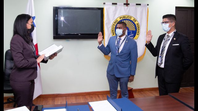 La Secretaria General de la Procuraduría General de la Nación (PGN), Delia De Castro, juramentó la tarde de este lunes, 3 de agosto de 2020, a los dos nuevos integrantes del Consejo Disciplinario de esta institución, los fiscales adjuntos Eimir Javier Samudio, y Rubén Manuel Garibaldi Jiménez, como miembro representante de los servidores y suplente, respectivamente.