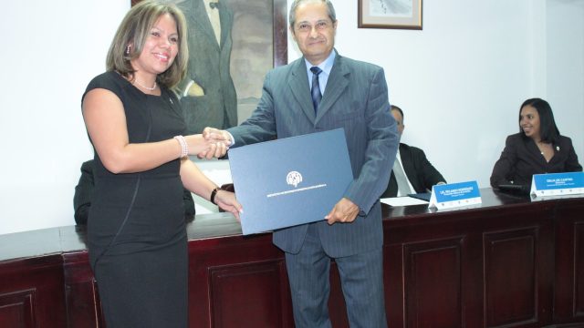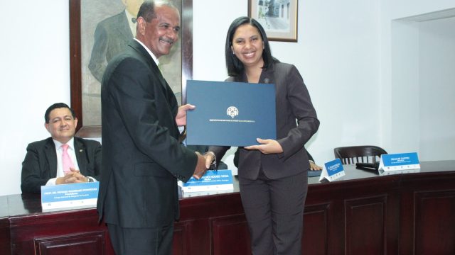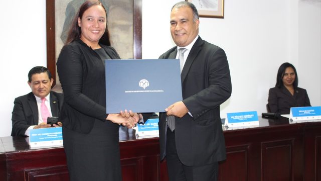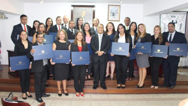 En el acto estuvieron presentes Mario Houed, Rector del Instituto de Estudios e Investigación Jurídica (INEJ); Dionisio Rodríguez, Presidente del Colegio Nacional de Abogados; Sergio Cuarezma Terán, Coordinador Académico de la Maestría y Delia De Castro, directora Escuela del Ministerio Público.