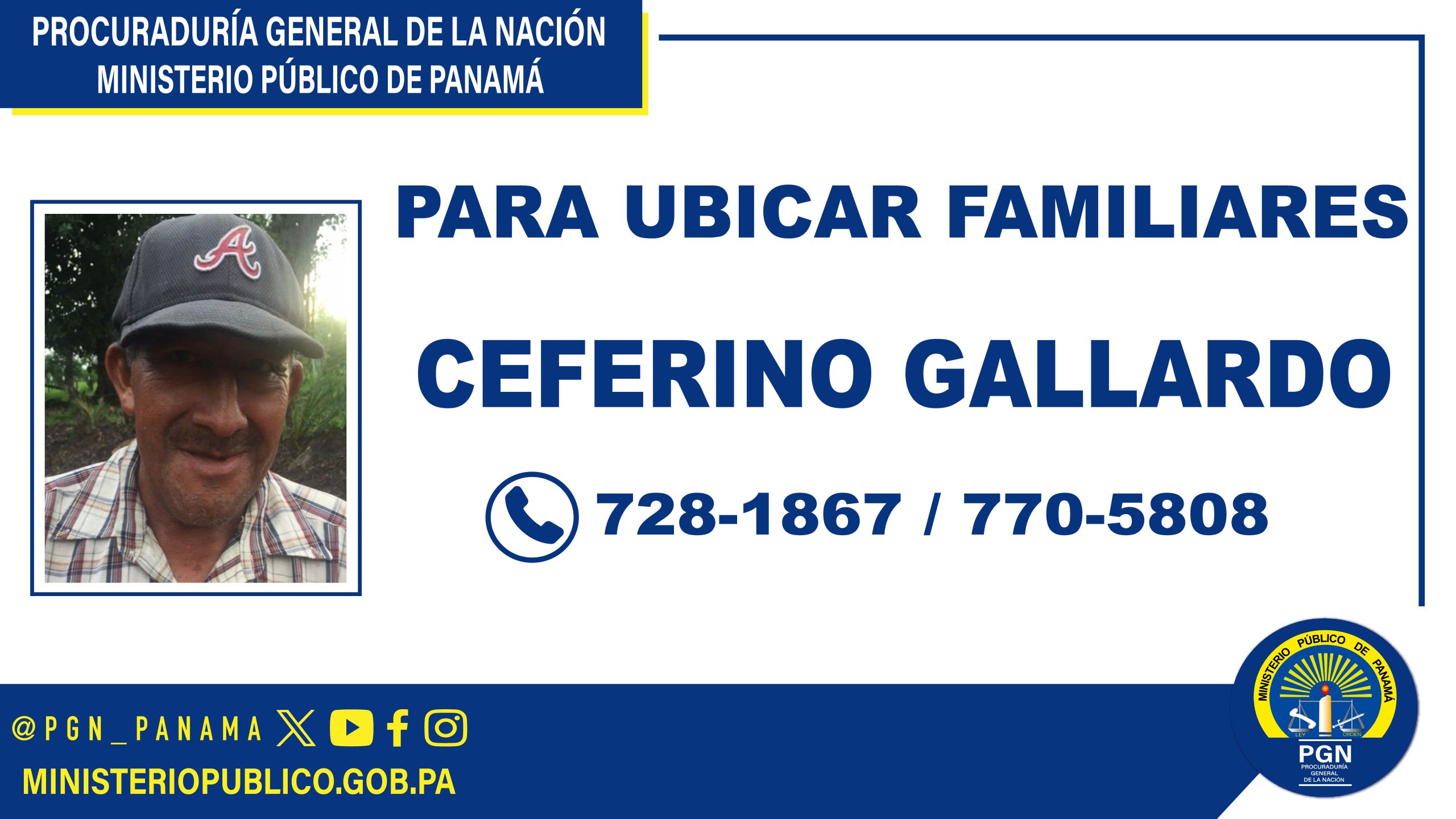 En Chiriquí, la Personería Municipal de Boquerón, solicita colaboración a la ciudadanía, para ubicar a familiares del señor Ceferino Gallardo de 72 años.