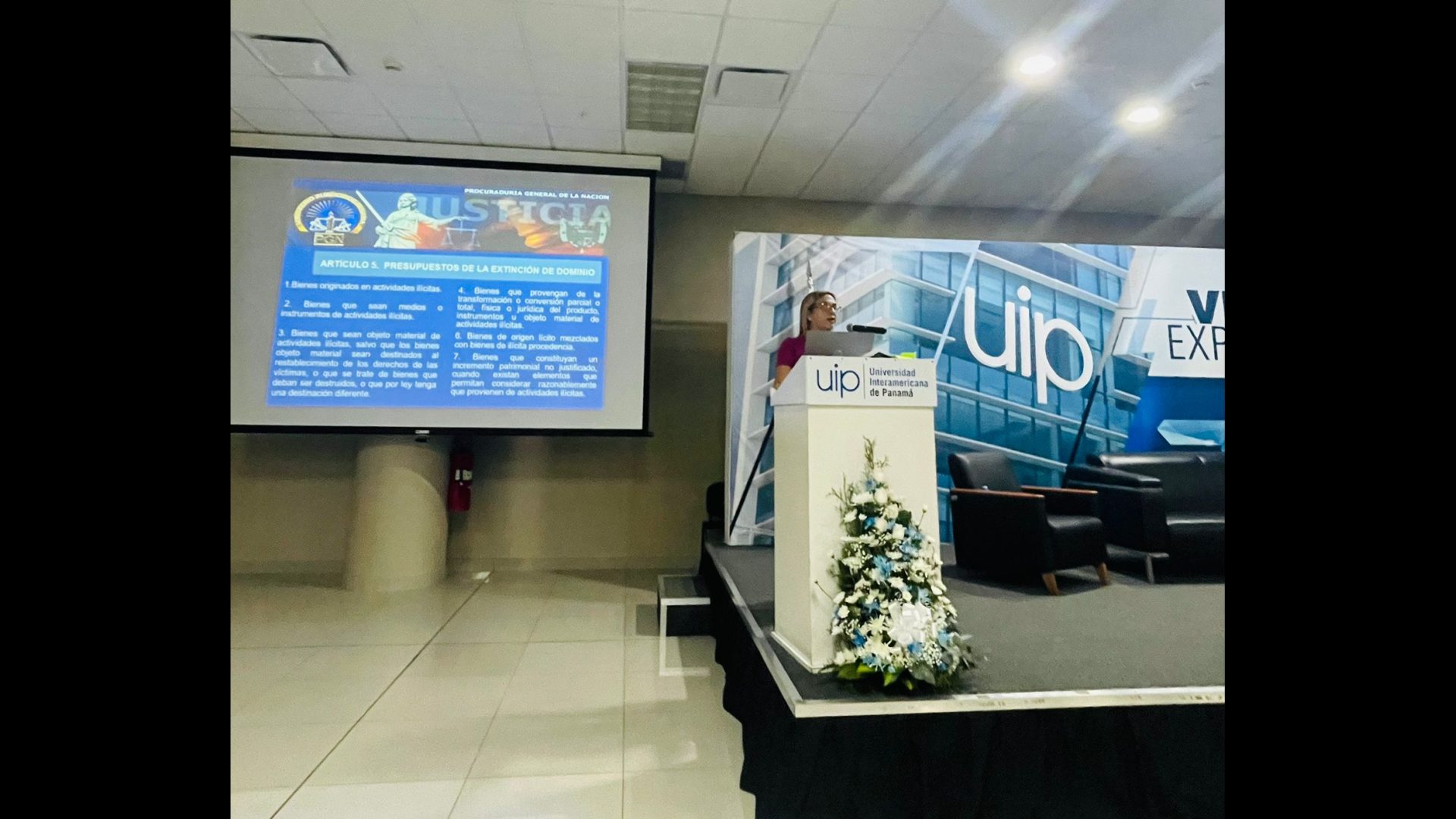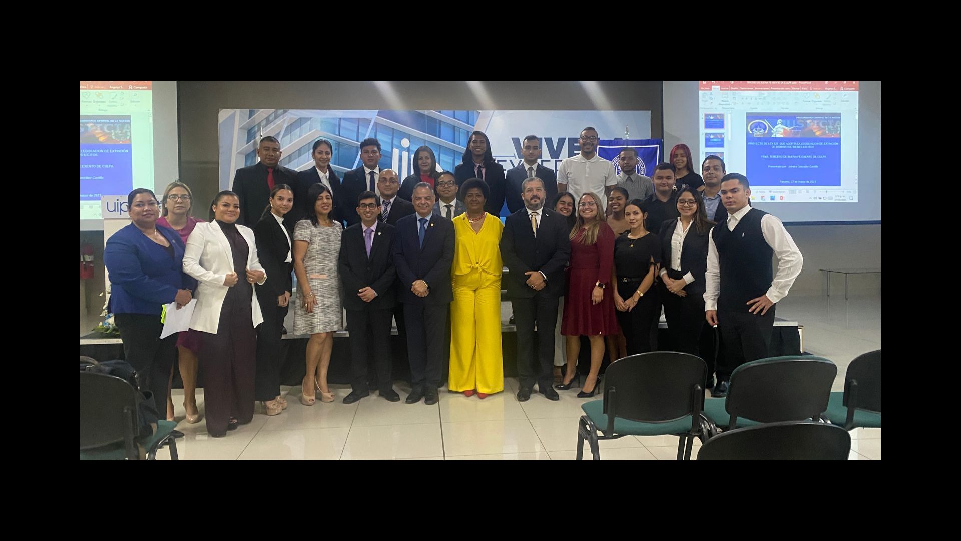 Los fiscales Mahmad Daud, Sandy Cedeño y Johaira González; y la asesora del Despacho Superior de la Procuraduría General de la Nación, Sheyla Villanueva, participaron como expositores en el conversatorio sobre el proyecto de Ley de Extinción de Dominio en Panamá, en el marco de la Jornada de Actualización Jurídica de la Facultad de Derecho y Ciencias Políticas de la Universidad Interamericana de Panamá, bajo la dirección del decano, Dr. Virgilio Sousa.