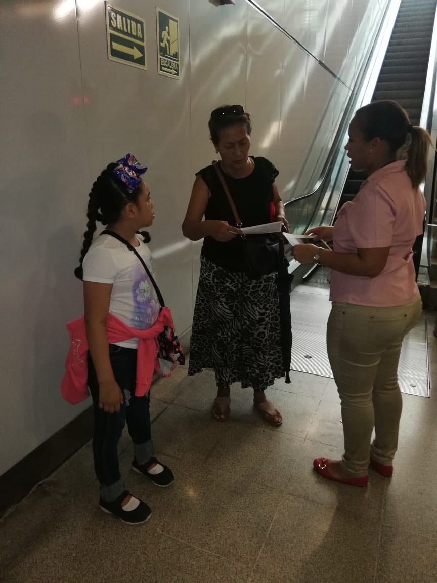 La actividad se desarrolló mediante volanteo que inició desde las 10:00 a.m. en el área de la estación del metro de la iglesia del Carmen hasta llegar al edificio AVESA, impactando a todas las personas que transitaban por estos lugares.