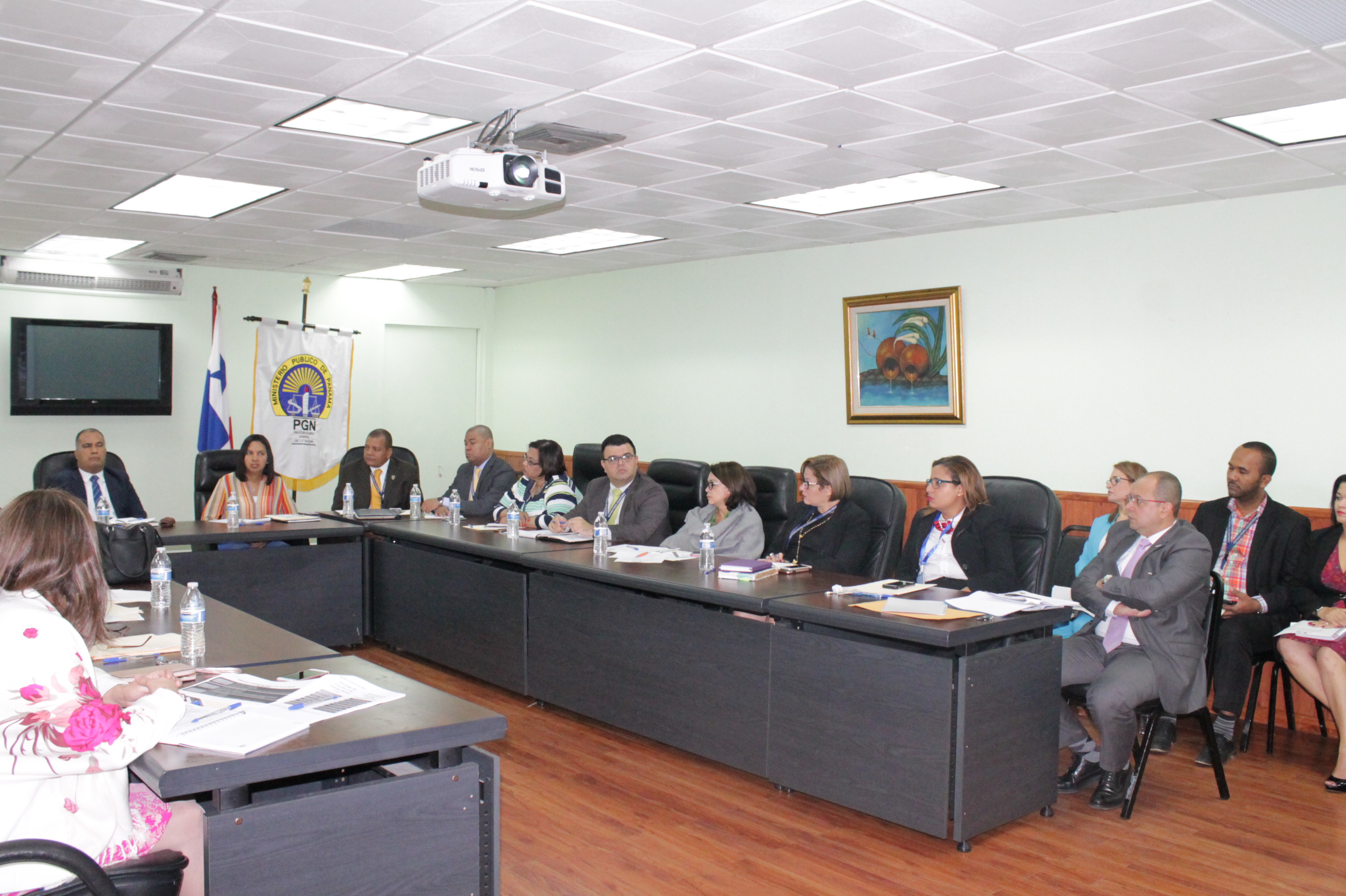 Fiscales Superiores de las Fiscalías de Descarga, Fiscales Superiores del SPA, entre otros jefes de Despachos, se dieron cita este 8 de mayo a tempranas horas de la mañana, en el salón de conferencias de la Dirección de Recursos Humanos para participar de la mesa de trabajo convocada respecto a los avances en la gestión de sus causas, al primer cuatrimestre 2018.
