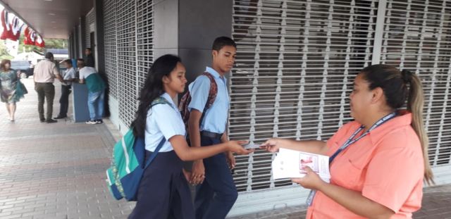 Dentro del marco de celebración, los funcionarios de la Secretaría de Derechos Humanos, 311 y de Recursos Humanos, abordaron a transeúntes en el Parque Porras y lugares aledaños al Ministerio Público, entregando volantes con información alusiva sobre este delito para concientizar a la población, lo cual forma parte de la lucha contra este flagelo por parte de la Procuraduría de la Nación.