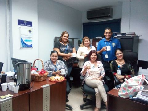 Se realizó el Café del Turno, en el cual colaboradores de la Unidad de Recursos Humanos en compañía de la Licda. Edilma Flores, Fiscal Coordinadora de Herrera, compartieron un calientito café, pan y queso con los colaboradores de la jornada nocturna; se realizó un recorrido por las personerías y Fiscalía de Drogas, llevando a los colaboradores un exquisito biscocho, acompañado de refrescos; además los colaboradores tuvieron la oportunidad de ejercitar su cuerpo con zumba, la cual fue dirigida por el entrenador, Pedro Guevara, actual Personero de La Personería Municipal de Los Pozos.