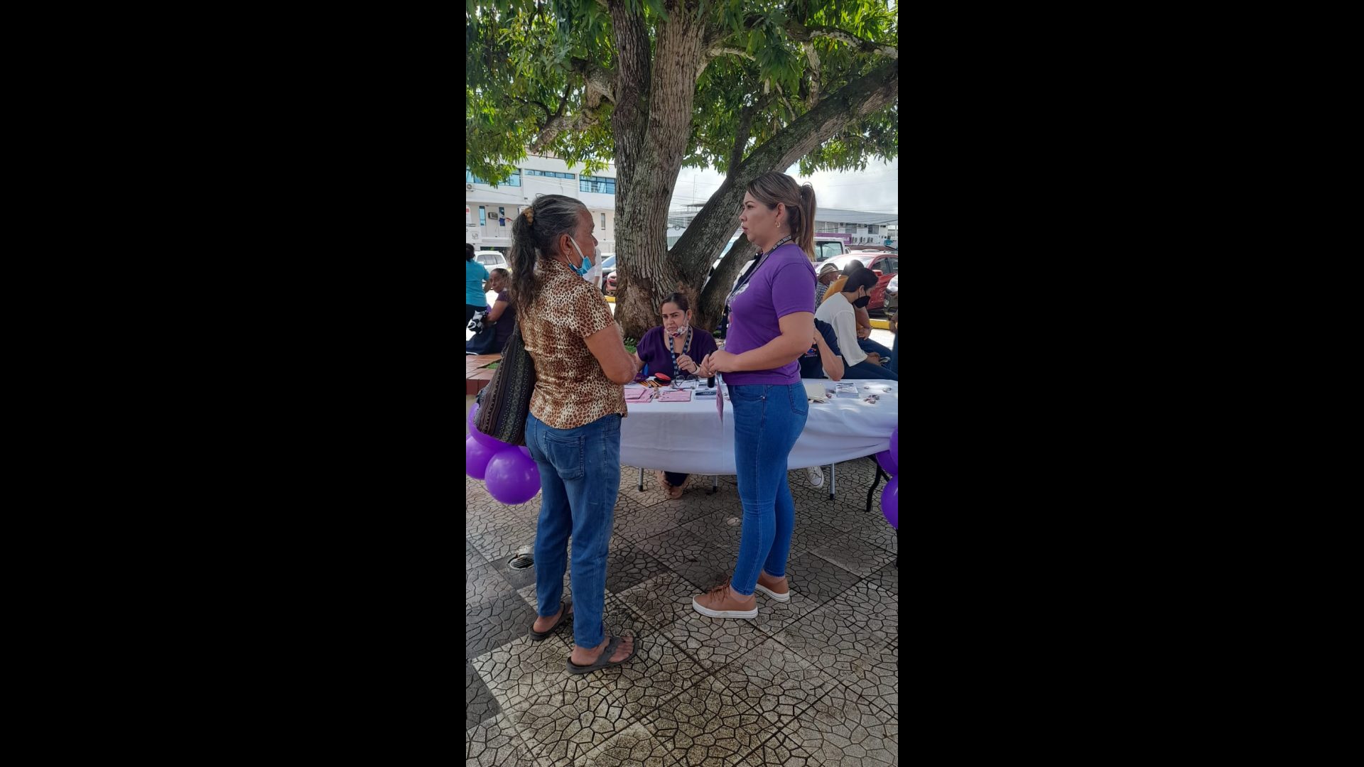 La caminata finiquitó en el parque de Santiago, lugar donde distintas instituciones ubicaron sus pancartas, entregamos trípticos y panfletos en prevención del delito de violencia doméstica, abordando la complejidad de este flagelo en la sociedad, tipos de violencia, construcciones sociales estereotipadas, ciclo de violencia, características de las víctimas, igualmente se orientó sobre los lugares donde acudir en busca de guía y apoyo, servicios que brinda la UPAVIT.