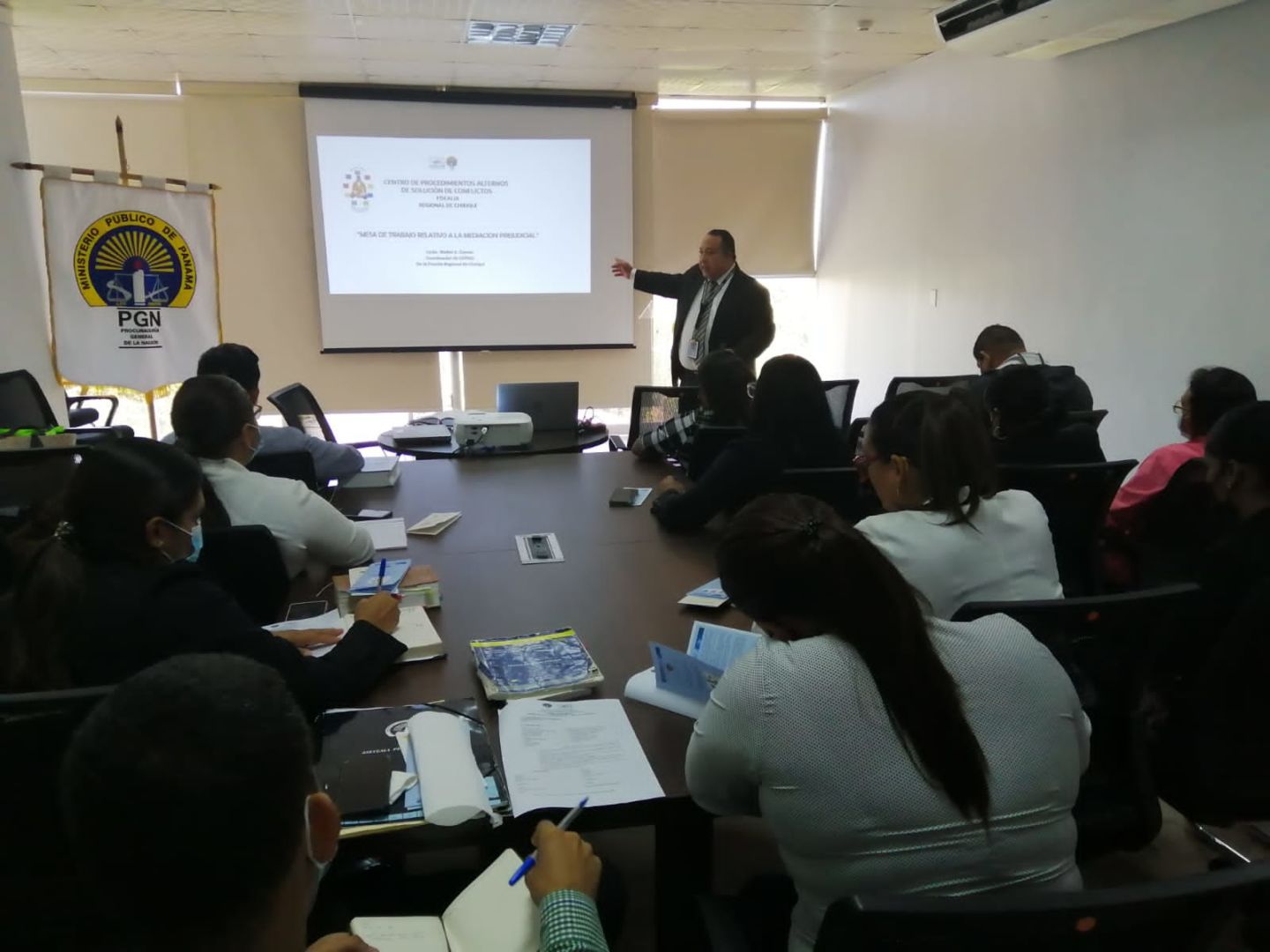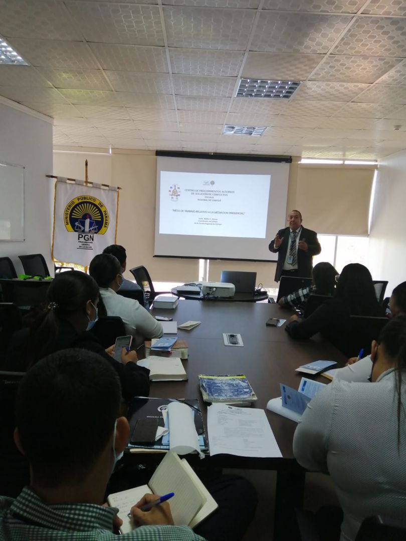 La Procuraduría General de la Nación, a través de la Secretaria Nacional de Procedimientos Alternos de Solución de Conflictos en coordinación y apoyo del Centro Regional de Chiriquí – CEPASC, se realizó el pasado jueves 27 de octubre de 2022 una jornada de docencia y sensibilización en la Fiscalía Regional de Bocas Del Toro con el tema “Mesa de Trabajo Relativo a la Potenciación de la Mediación Prejudicial”, con la finalidad de capacitar a Fiscales, Fiscales adjuntos y operativos relativo de la Gestión de Trabajo de los Centros de Procedimientos Alternos de Solución de Conflictos.