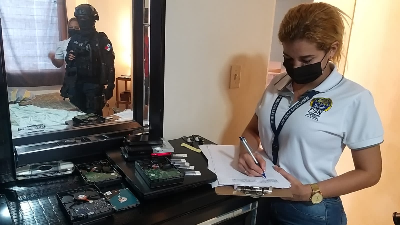 En las distintas diligencias realizadas por el Ministerio Público y la Dirección Nacional de Inteligencia Policial (DNIP) en las provincias de Panamá, Panamá Oeste y Chiriquí, se decomisaron equipos tecnológicos como: 23 discos duros (externo e interno), 18 dispositivos de almacenamiento (USB y tarjetas de memorias SD), 79 discos compactos, 16 computadoras (portátiles y de escritorio), 1 tablet y 9 teléfonos celular.